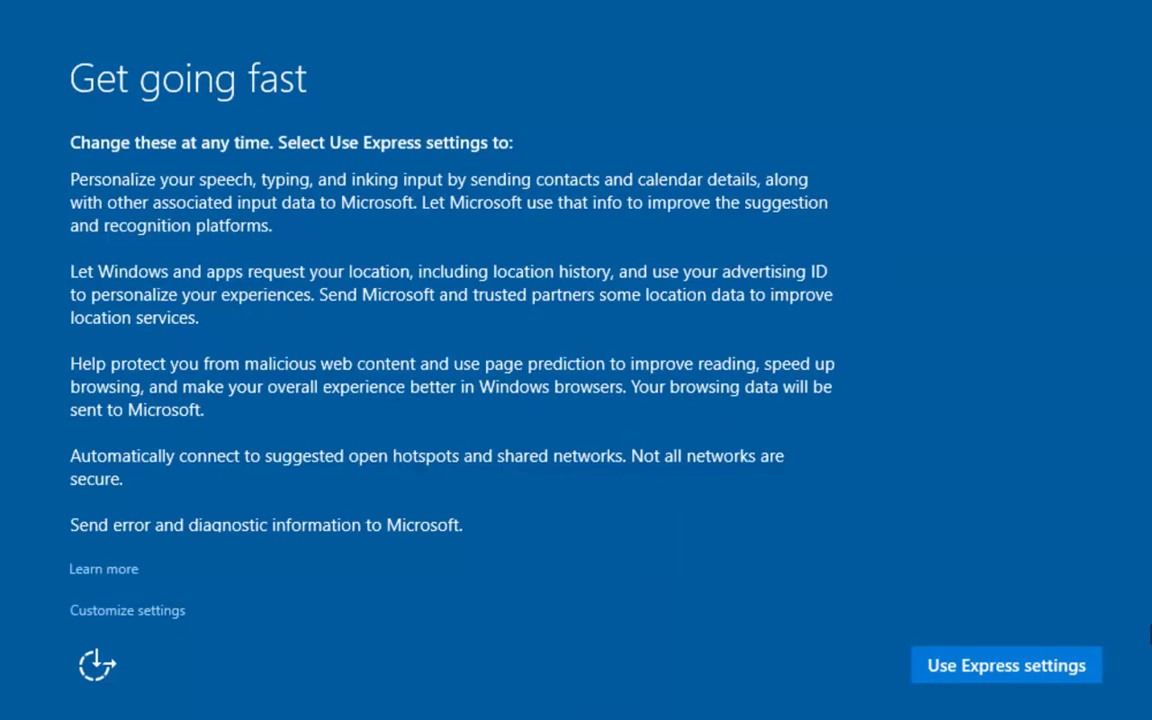 6. When the system restarted, you’ll see the windows express settings appear on the screen, you can use it for your windows or customize settings yourself but I’d recommend you to use the express settings, to use click on Use Express Settings.